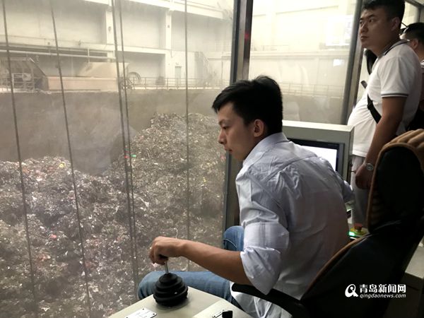 光大國際滕州環(huán)保能源項(xiàng)目工作人員正在操控機(jī)器,處理生活垃圾。