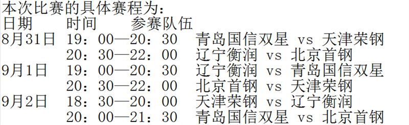 青島新聞網8月20日訊 (記者 劉文超)8月31日至9月2日,2018CBA夏季聯賽暨“雙星錦湖杯”環渤海職業籃球挑戰賽將在青島市國信體育館舉行,參賽球隊包括2017-2018賽季CBA聯賽總冠軍遼寧衡潤隊、曾四年三奪CBA聯賽總冠軍的北京首鋼隊、來自中國籃球發源地的天津榮鋼隊和東道主青島國信雙星隊,四支球隊將進行單循環比賽。