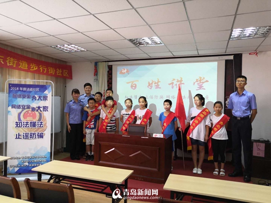 青島新聞網8月21日訊(記者 于泓 通訊員 王佳)8月21日,2018年市北區網絡普法進社區活動在臺東街道步行街社區正式啟動,來自青島市公安局網警支隊的警官們以共筑網絡安全、共享網絡文明為主題,針對當下新型的網絡詐騙、網絡謠言等網絡安全問題,用鮮活的案例、通俗易懂的語言為社區居民、順興路小學同學們上了一堂生動的“防詐騙”課。