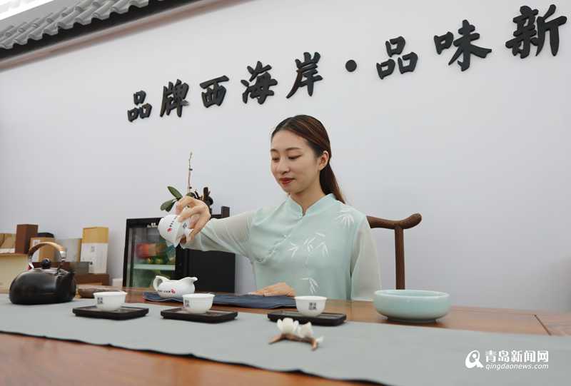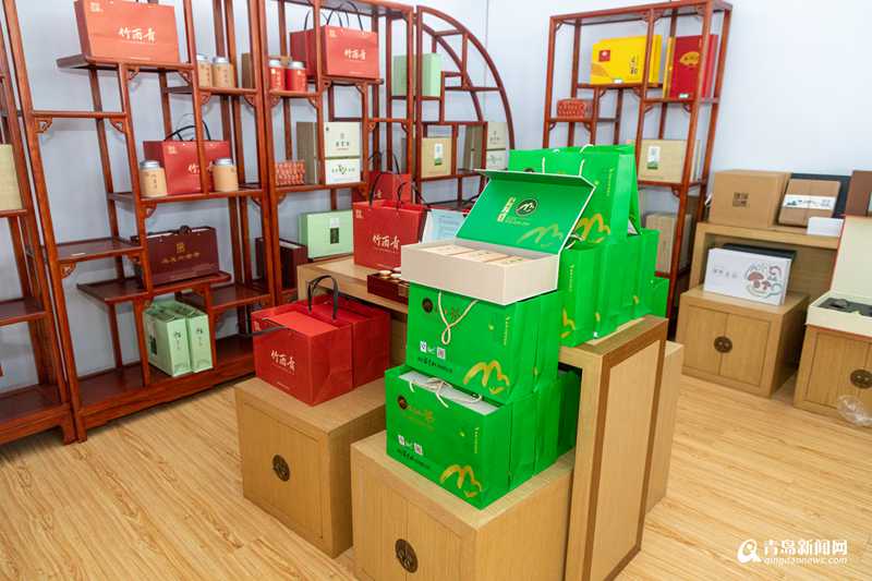 走進“瑯琊驛站”,琳瑯滿目的瑯琊品牌產品陳列其中,有瑯琊海青茶、瑯琊雞、瑯琊菇等西海岸特色農產品四五十種。記者了解到,這里集銷售、展示、體驗于一體,廣大游客可以在此免費品嘗到“色如小米湯、散發(fā)豌豆香”的瑯琊海青茶。