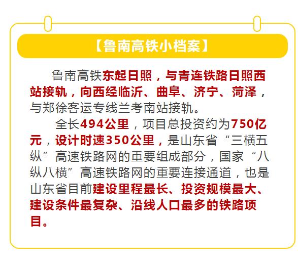 作為山東省目前境內里程最長、投資規模最大的鐵路項目,魯南高鐵計劃于2019年年底通車。