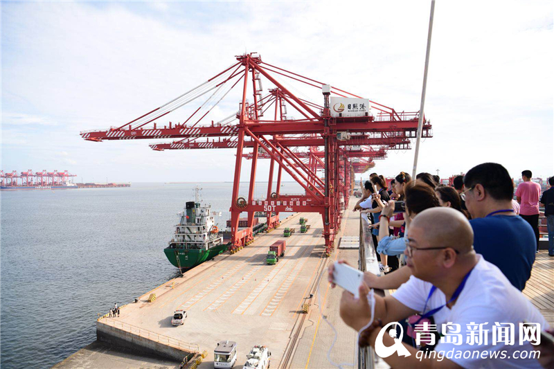 第十四屆中國(guó)網(wǎng)絡(luò)媒體山東行采訪團(tuán)走進(jìn)日照港展覽館
