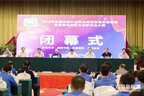 青島新聞網(wǎng)9月28日訊 (通訊員 張峰林 尹鈴云)今天下午,為期兩天的2018年全國機械行業(yè)職業(yè)院校智能制造領域教育教學創(chuàng)新及創(chuàng)新創(chuàng)業(yè)大賽總決賽在青島萊西市華璽酒店圓滿落下帷幕。閉幕式由萊西市教育體育局副局長褚光斌主持,萊西市人大常委會副主任王志強致閉幕辭,青島市教育科學研究院院長柴清林、國家機械工業(yè)教育發(fā)展中心主任助理兼產(chǎn)教合作處處長王志強作了總結性講話,大賽組委會主任、國家機械工業(yè)教育發(fā)展中心副主任房志凱宣布大賽閉幕。