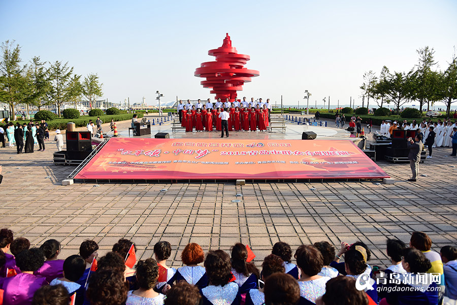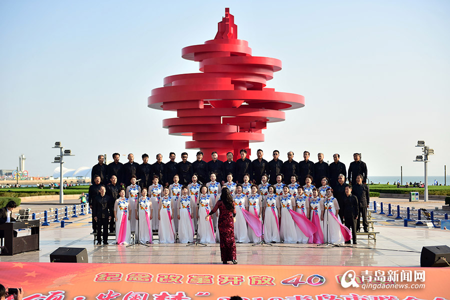 青島新聞網9月30日訊(記者 孫志文 王爽)今天下午,由中共青島市委宣傳部、青島市文化廣電新聞出版局主辦,青島市文化館、各區(市)文化(廣電)新聞出版局承辦的紀念改革開放40周年——“改革頌 中國夢”2018青島市群眾合唱展演在五四廣場舉行。來自全市的14支優秀合唱團,在“五月的風”腳下唱響同一個旋律,祝福偉大祖國69歲華誕生日快樂!