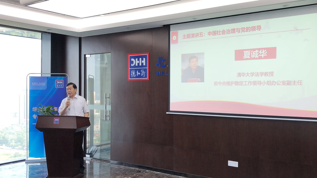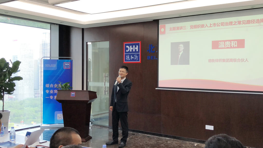 德衡律師集團合伙人會議副主席胡明主持會議。會上,亞洲公司治理協會專家李睿女士,中華全國工商金銀珠寶商會副會長、深圳市愛迪爾珠寶首飾股份有限公司名譽董事長蘇日明,德衡律師集團高級合伙人溫貴和律師,德衡律師集團高級聯席合伙人、集團上市公司業務中心總監丁旭律師,清華大學夏誠華教授,分別做了主題演講,分享對于黨建嵌入上市公司治理的思考。