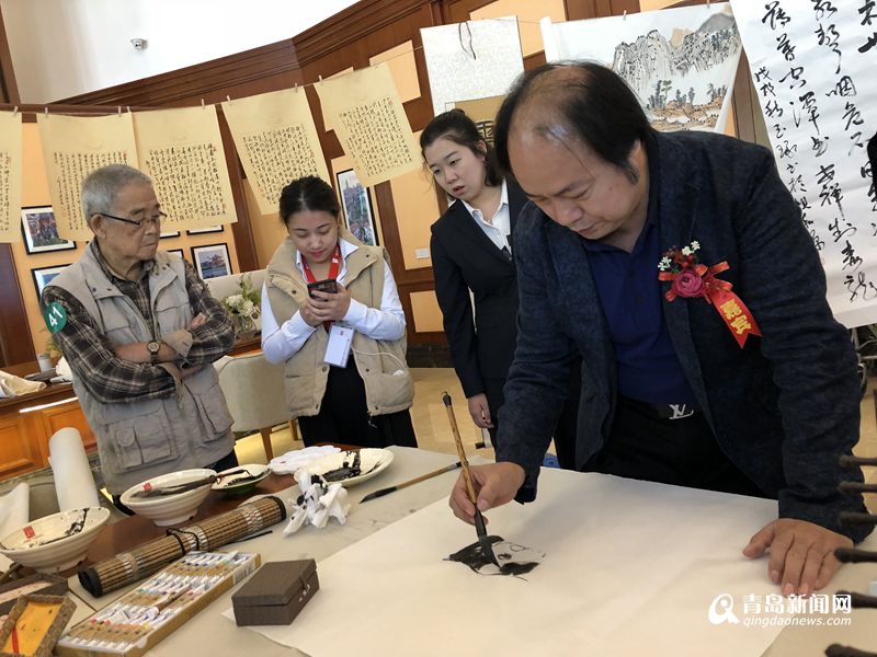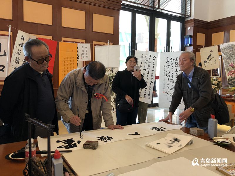 活動邀請了林建業、薛波、胡永剛、單繼宏、王偉業、王沂、王勇、臧崇樑、張耀輝等島城知名書畫家參加,書畫家們現場揮毫,一幅幅精美作品油然而生,許多圍觀的老年書法愛好者不僅感慨藝術家們的專業性。活動現場,藝術家們與愛好者一起交流,互相表演畫技,并點評作品,放松愉悅的氛圍讓在場每個人都受益匪淺。