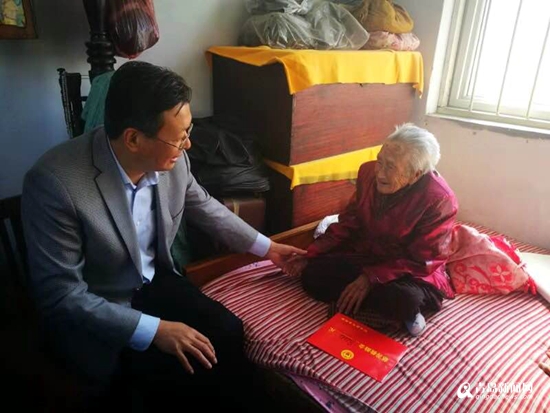 區慈善總會會長孫鑄在區老齡辦主任李春燕的陪同下走訪慰問金口中心敬老院,并到龍泉街道看望百歲老人,為老人送去節日祝福!