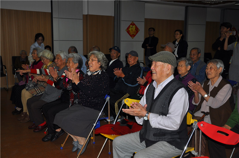 老人們對小朋友的表演報以熱烈的掌聲