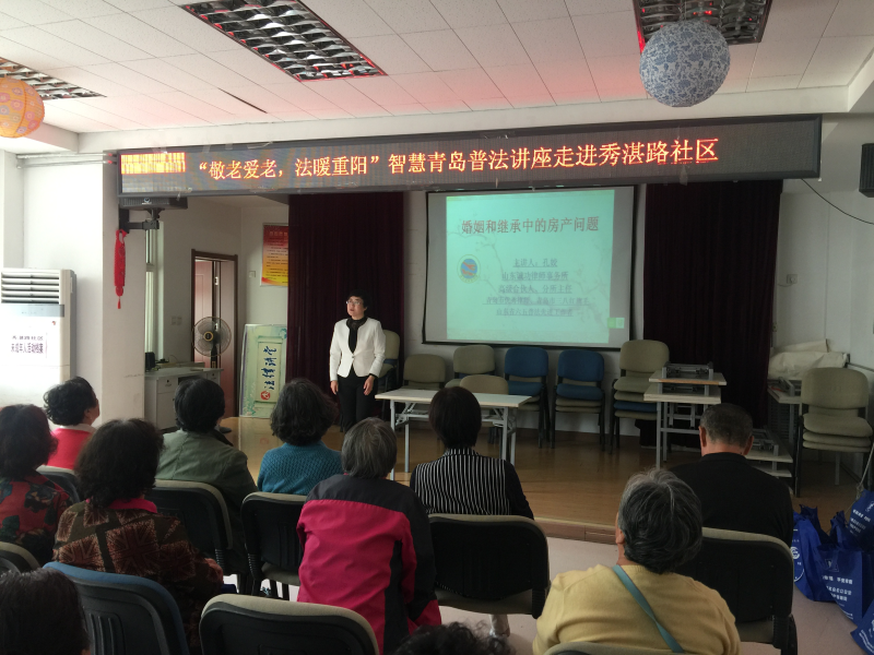 為弘揚中華民族愛老敬老的傳統(tǒng)美德,普及愛老敬老法律法規(guī),保障老年人的合法權益,10月16日,智慧青島攜手青島誠功律師事務所在重陽節(jié)來臨之際于湛山街道秀湛路社區(qū)針對社區(qū)老年朋友開展了一堂法制講座。