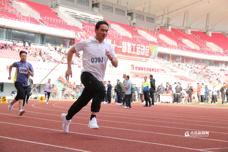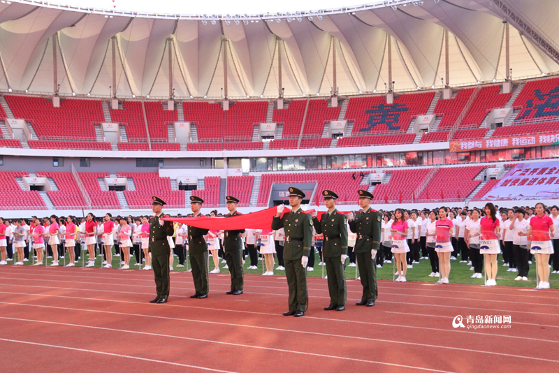 在運動員進行曲中,49支隊伍的1850名裁判員、運動員在國旗隊的前導下,邁著整齊的步伐入場,展示出了嶗山區各行各業職工奮發向上、團結進取的精神風貌,以及干事創業的熱情和創造活力。