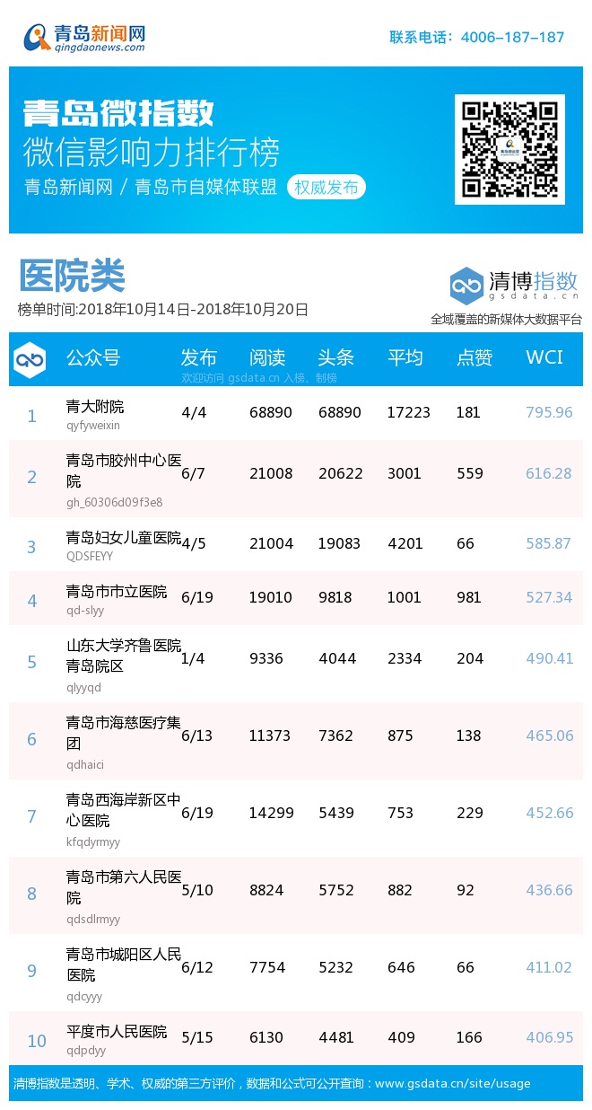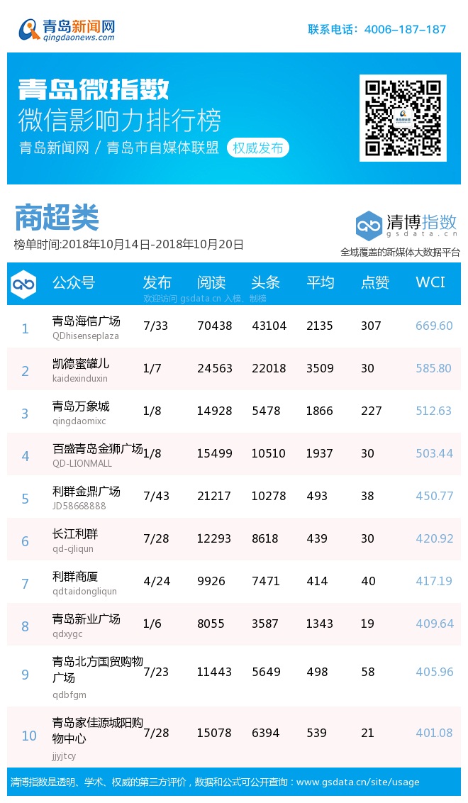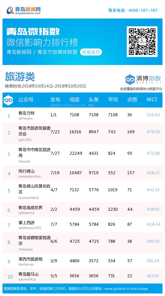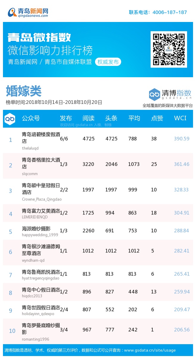 3、本次榜單收錄了青島14個行業微信公眾號,如您的賬號暫未收錄,可聯系4006-187-187。