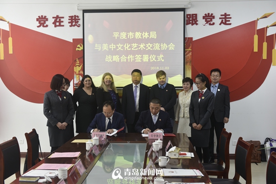 座談之后,美中文化藝術交流協會執行會長劉少華與平度市教育體育局局長柴生華簽署《中美友好戰略協作框架備忘錄》。