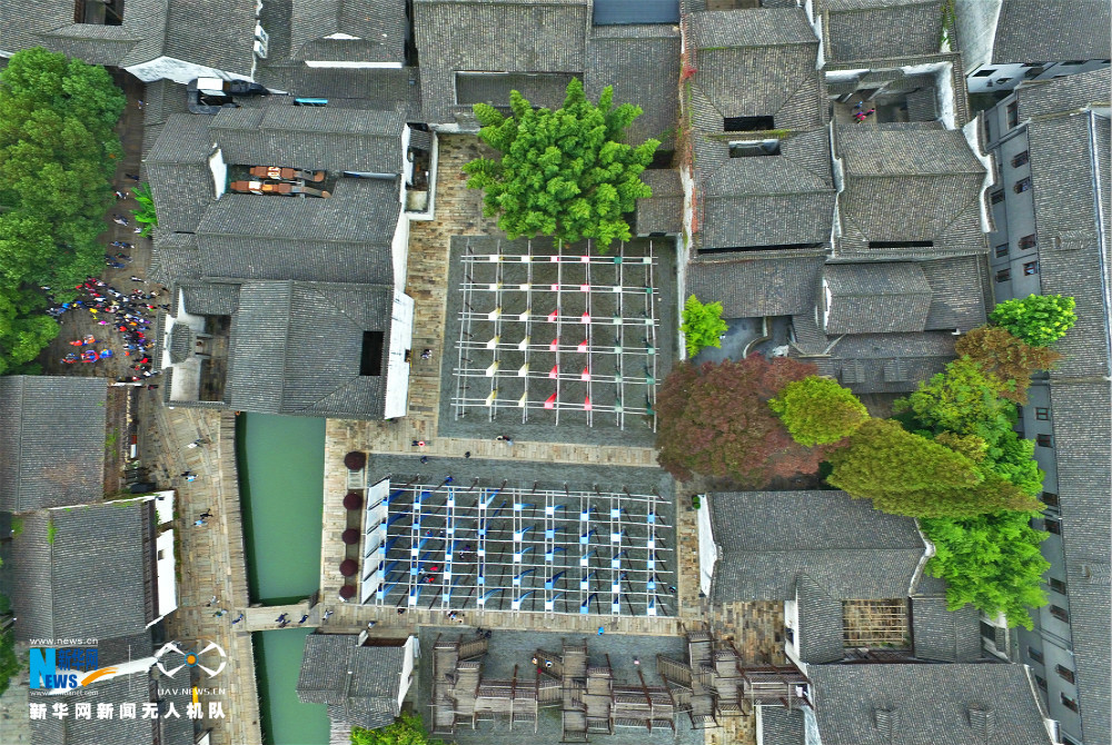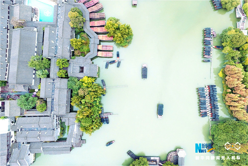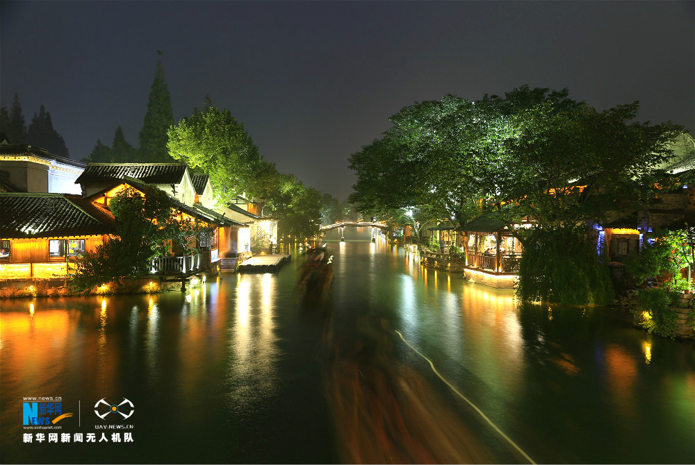 夢里的江南水鄉,小橋流水,粉墻黛瓦,槳聲燈影,枕水人家……烏鎮,這座千年的古鎮,即將迎來一場盛會——第五屆世界互聯網大會,一場古典與現代的碰撞將再度展開。鳥瞰烏鎮,古色古香,如詩如畫。新華網 毛嘉煒 攝。