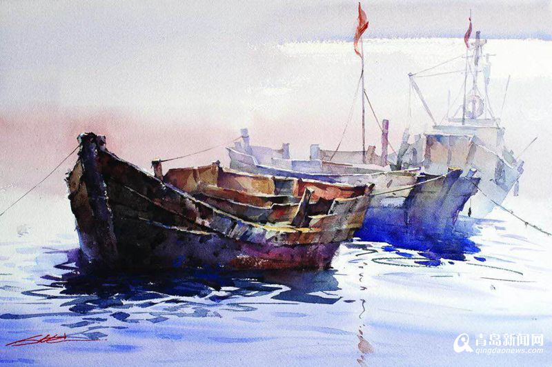 “一直喜歡水彩畫那種水色交融的明快、虛無縹緲的浪漫以及奧妙無限的留白……但眼高手低雖經努力仍無法達到這種境界,天資愚鈍使然。這些作品雖有損水彩畫的‘英名’,但也是筆隨心動描繪了內心的感受。青島的老城與飽經風雨的舊漁船似乎總有那么一點同命相連的滄桑,也符合自己的心境與一種情懷,于是就成為我最喜歡畫的兩個題材?!睂τ谧约核首髌返慕庾x,史新志如是說。