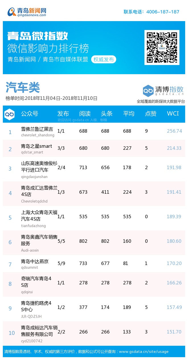 3、本次榜單收錄了青島14個行業微信公眾號,如您的賬號暫未收錄,可聯系4006-187-187。