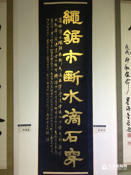 青島新聞網11月12日訊(記者 王超)為慶祝中國改革開放四十周年、中韓兩國建交二十六周年,由青島市嶗山區文化新聞出版局和(社團法人)韓國書法家協會暨仁川廣域市支會主辦,嶗山美術館與青島吉金堂美術館承辦的“2018中韓書畫國際交流展”11月10日下午三點在嶗山美術館拉開帷幕,對外展出至11月16日。