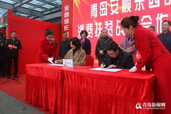 安順市商務(wù)局局長李猛、交運(yùn)集團(tuán)黨委書記、董事長劉永康先后致辭,安順市農(nóng)委總農(nóng)藝師艾勇作了安順特色農(nóng)產(chǎn)品的介紹。隨后,兩市領(lǐng)導(dǎo)和現(xiàn)場市民共同見證了安順市總工會(huì)與青島利群集團(tuán)簽訂戰(zhàn)略合作協(xié)議,交運(yùn)集團(tuán)、城陽區(qū)安順扶貧協(xié)作農(nóng)產(chǎn)品店、青島廣電集團(tuán)府新安順特產(chǎn)店、李滄李村茶葉批發(fā)市場,分別與貴州綠野芳田有限公司簽訂戰(zhàn)略合作協(xié)議。最后,安順市人大常委會(huì)副主任、市總工會(huì)主席羅曉紅宣布活動(dòng)正式啟動(dòng)。