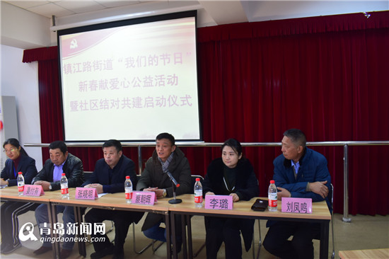 青島新聞網1月24日訊(記者王宇琦)為充分發揮黨建引領作用,讓困難群體度過一個歡樂祥和的春節,1月24日下午,市北區鎮江路街道弘揚“扁擔”精神,在漢口路社區開展“‘我們的節日’新春獻愛心公益活動暨社區結對共建啟動儀式”。平度市云山鎮北宋格莊村第一書記蔡朝輝、平度市云山鎮北宋格莊村黨支部書記姜付有、青島廣積德醫療管理有限公司市北中醫診所院長劉鳳鳴出席此次活動。