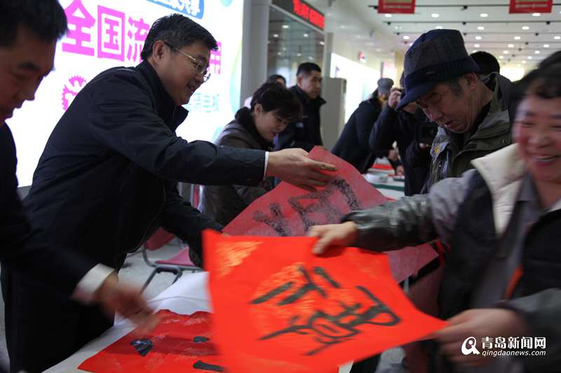 活動(dòng)現(xiàn)場,市總工會(huì)還組織島城書法名家開展“同心同書·祖國新春好”書法文化惠民——送萬福進(jìn)萬家書法公益活動(dòng),為困難職工送福送對(duì)聯(lián)。