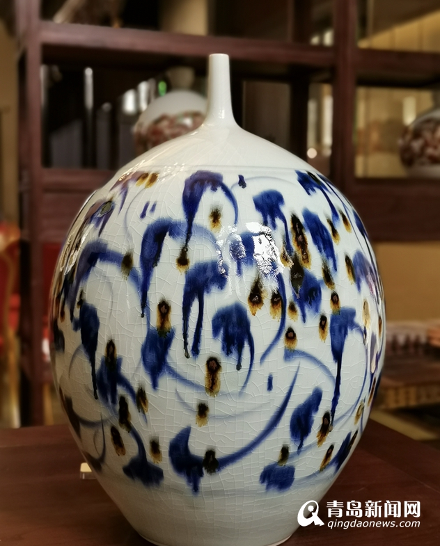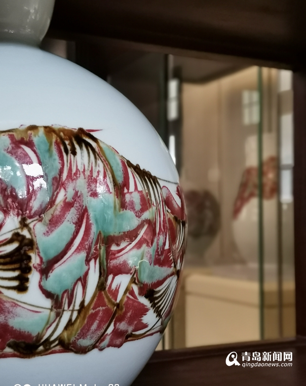 講座現場共展示了許雅柯青花釉里紅陶瓷作品三十余件,完整展現了其青花釉里紅藝術的獨特審美高度。在講座中許雅柯教授結合作品談到他在陶瓷創作中的理念、脈絡與未來期許:“我遇見青花,其實是從品質高潔的青花藝術進入,到把流光溢彩的釉里紅燒制到新的審美高度,再到今后對氧化鐵的藝術探尋,這條脈絡其實是一種體系的積累,一種生態的連續,是一條縱向與橫向的脈絡聯接。”