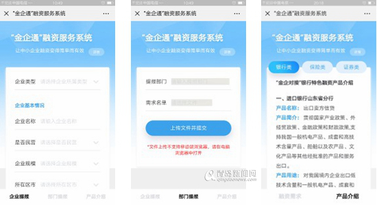 一是下載安裝青島日報客戶端“青島觀”,點擊頁面中的“金企通”融資服務平臺圖標即可登錄提報。
