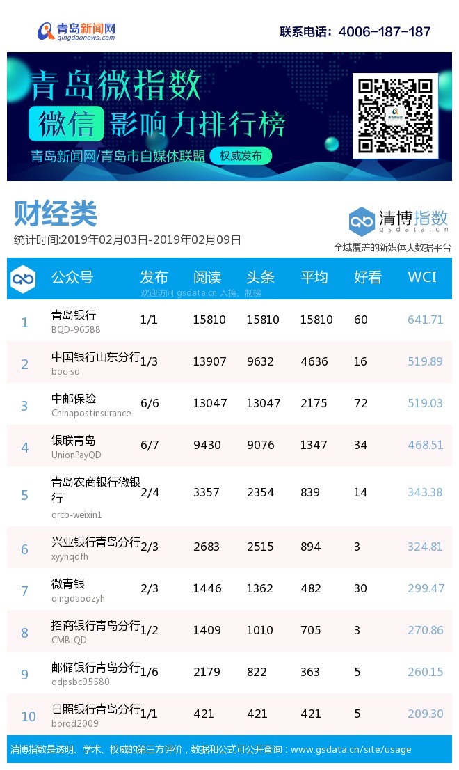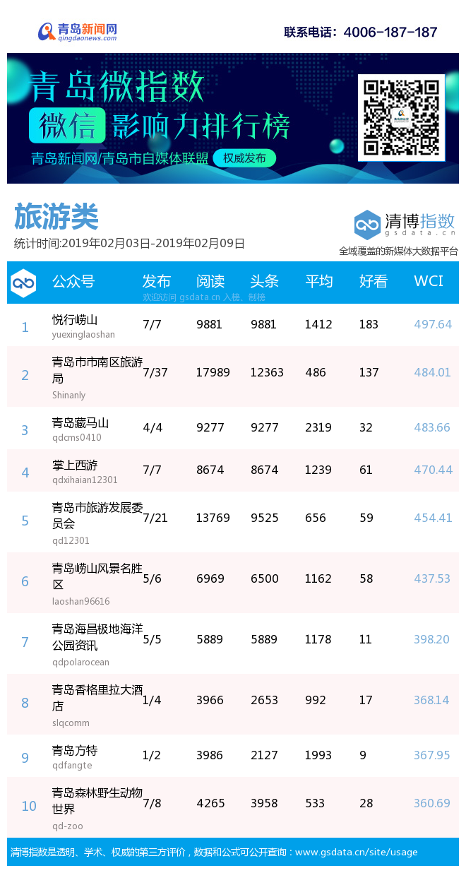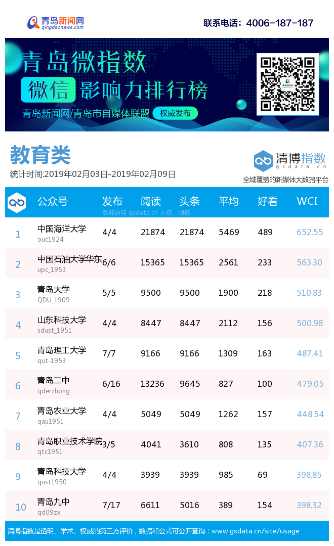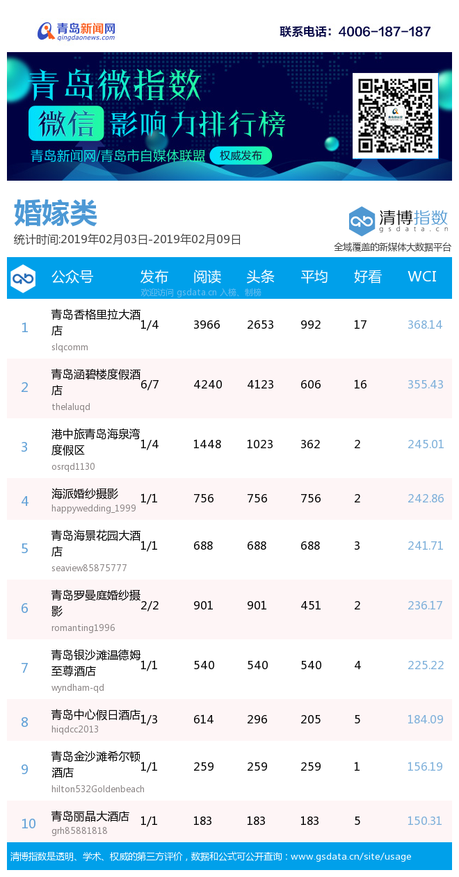 3、本次榜單收錄了青島14個行業微信公眾號,如您的賬號暫未收錄,可聯系4006-187-187。