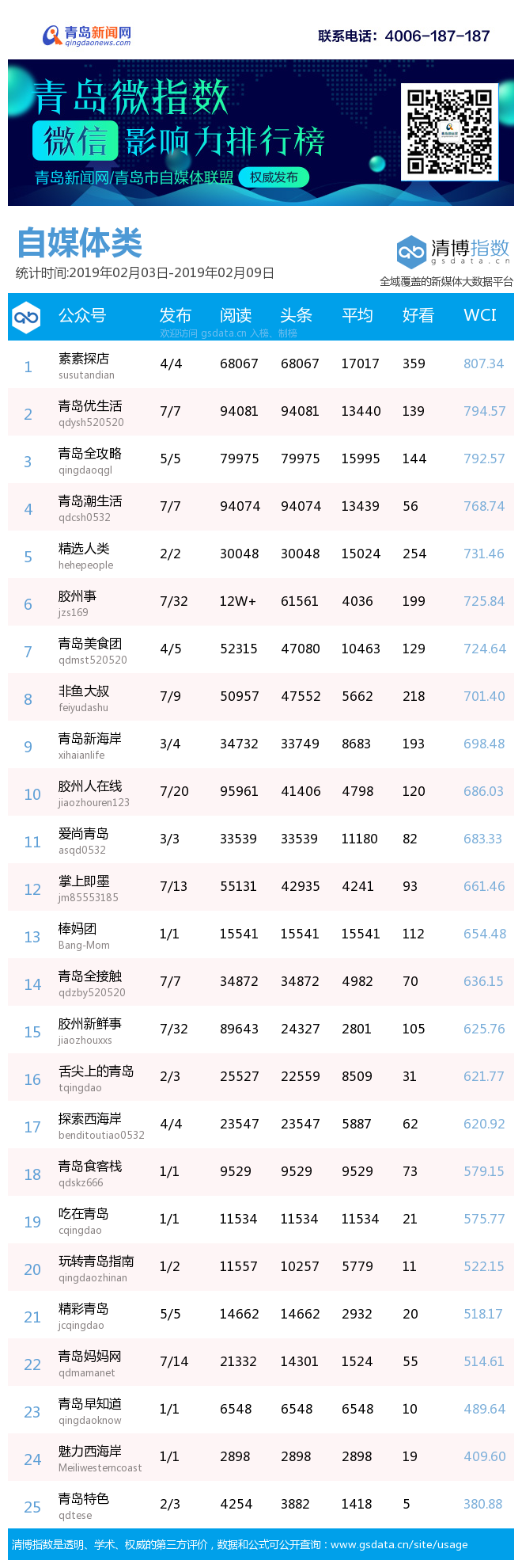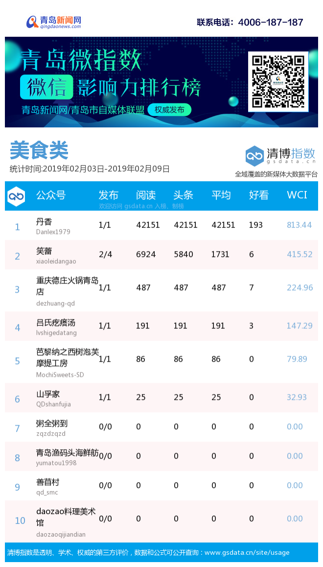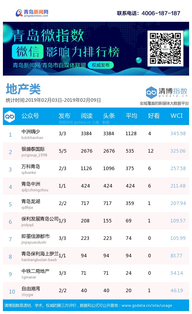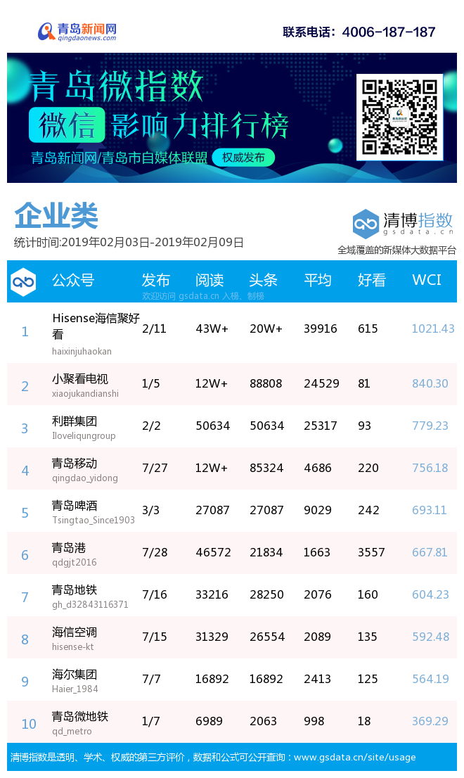 3、本次榜單收錄了青島14個行業微信公眾號,如您的賬號暫未收錄,可聯系4006-187-187。
