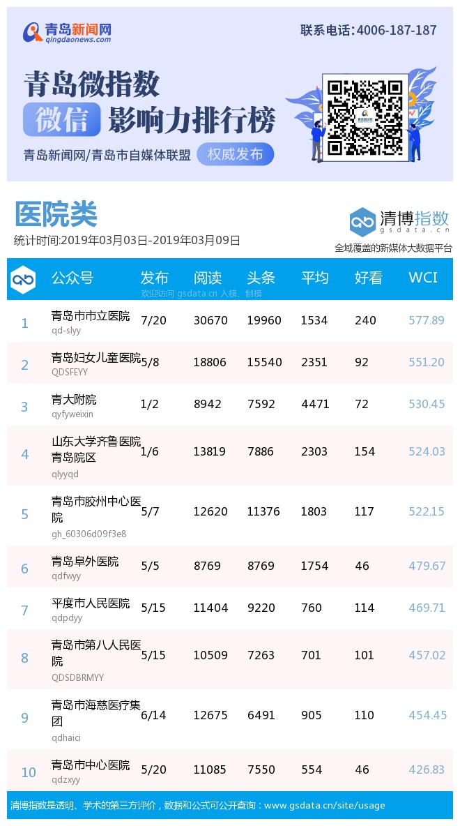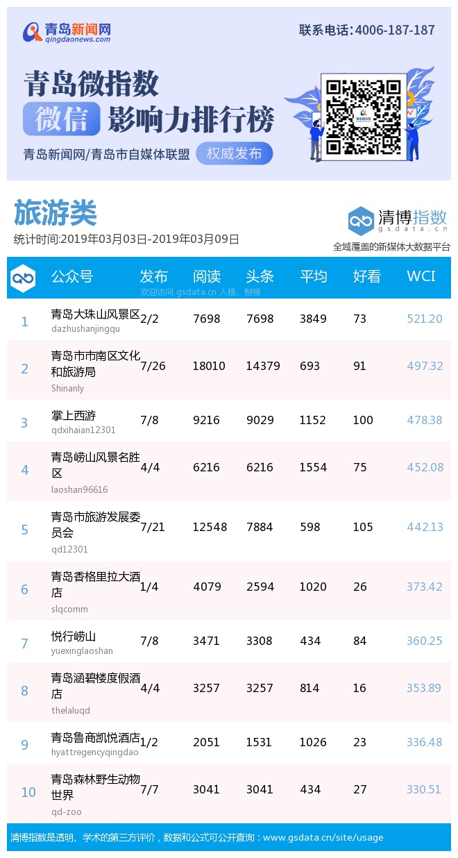 3、本次榜單收錄了青島14個行業微信公眾號,如您的賬號暫未收錄,可聯系4006-187-187。