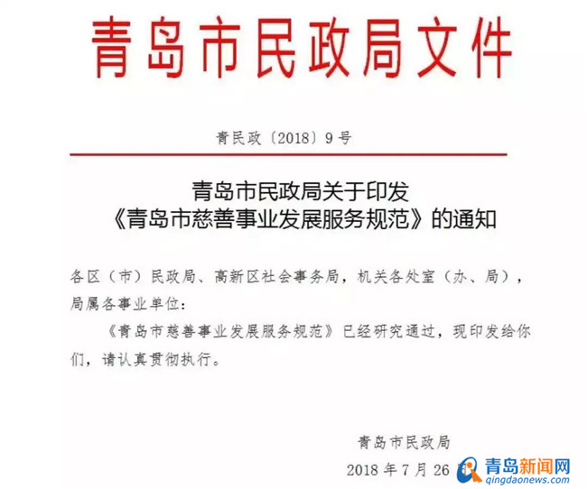 青島新聞網 6月10日訊 2018年7月26日,青島市民政局印發《青島市慈善事業發展服務規范》,這是國內首個促進慈善事業發展服務的標準化規范文件。一起來看看,規范中提到了哪些內容。