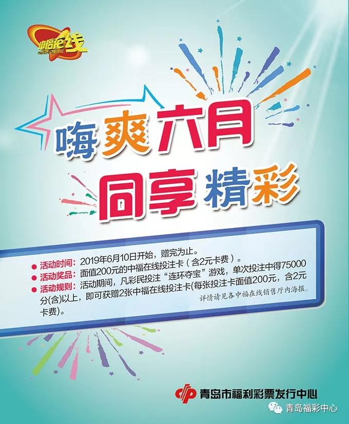 活動(dòng)期間,在省內(nèi)任意一家福彩中福在線視頻票銷售廳參與任一游戲投注,凡中得全國累積獎(jiǎng)的,即可獲得“爆機(jī)獎(jiǎng)上獎(jiǎng)”獎(jiǎng)品,獎(jiǎng)勵(lì)200元面值中福在線體驗(yàn)卡30張,價(jià)值6000元。