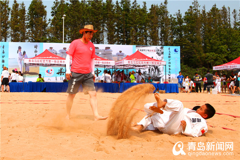 青島國際沙灘跆拳道公開賽已成功舉辦兩屆,今年是第三屆,賽事共進行個人品勢、師徒組品勢、親子組品勢和跆拳道舞的比賽,還有馬來西亞隊和韓國隊選手參賽,這是青島國際沙灘跆拳道公開賽首次有國際隊伍參賽。樂行跆拳道館、fkt福州路跆拳道館、邁可達跆拳道館分別獲得團體前三名。