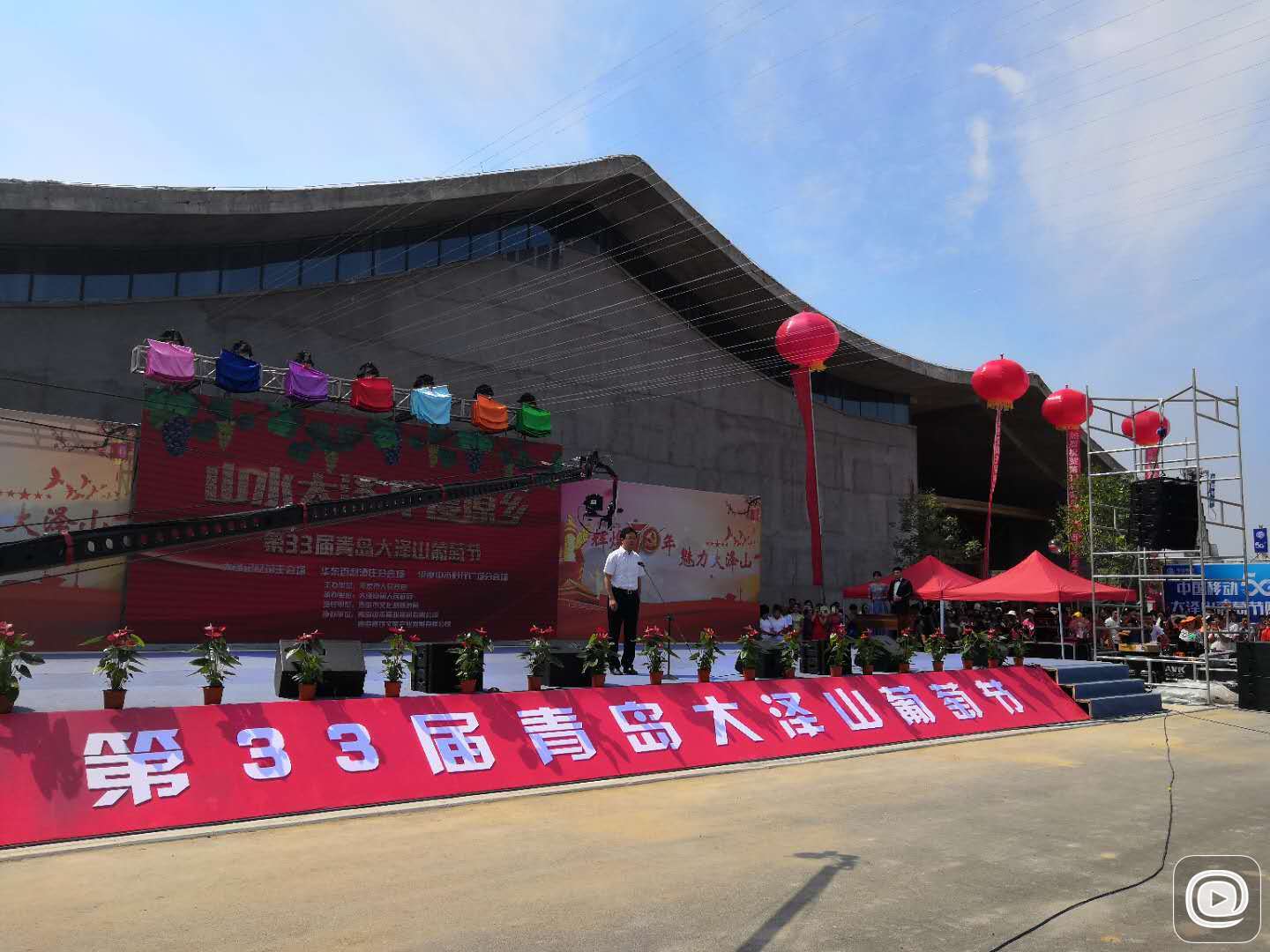 平度市副市長(zhǎng)徐廣舉上臺(tái)宣布本屆大澤山葡萄節(jié)開幕。