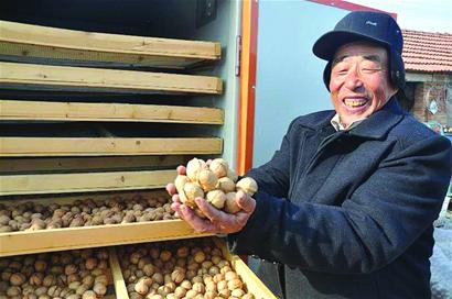 為了使核桃的銷路更廣,他通過電商在網(wǎng)上銷售,甘肅的一家公司需要這種大個核桃鮮果,從中提取腦磷脂,通過網(wǎng)上看到銷售信息后,專門從甘肅趕過來,一下子訂購了30余噸鮮果。其他多家大型超市也通過網(wǎng)站獲得他的信息,通過實地考察,紛紛簽訂合作協(xié)議。