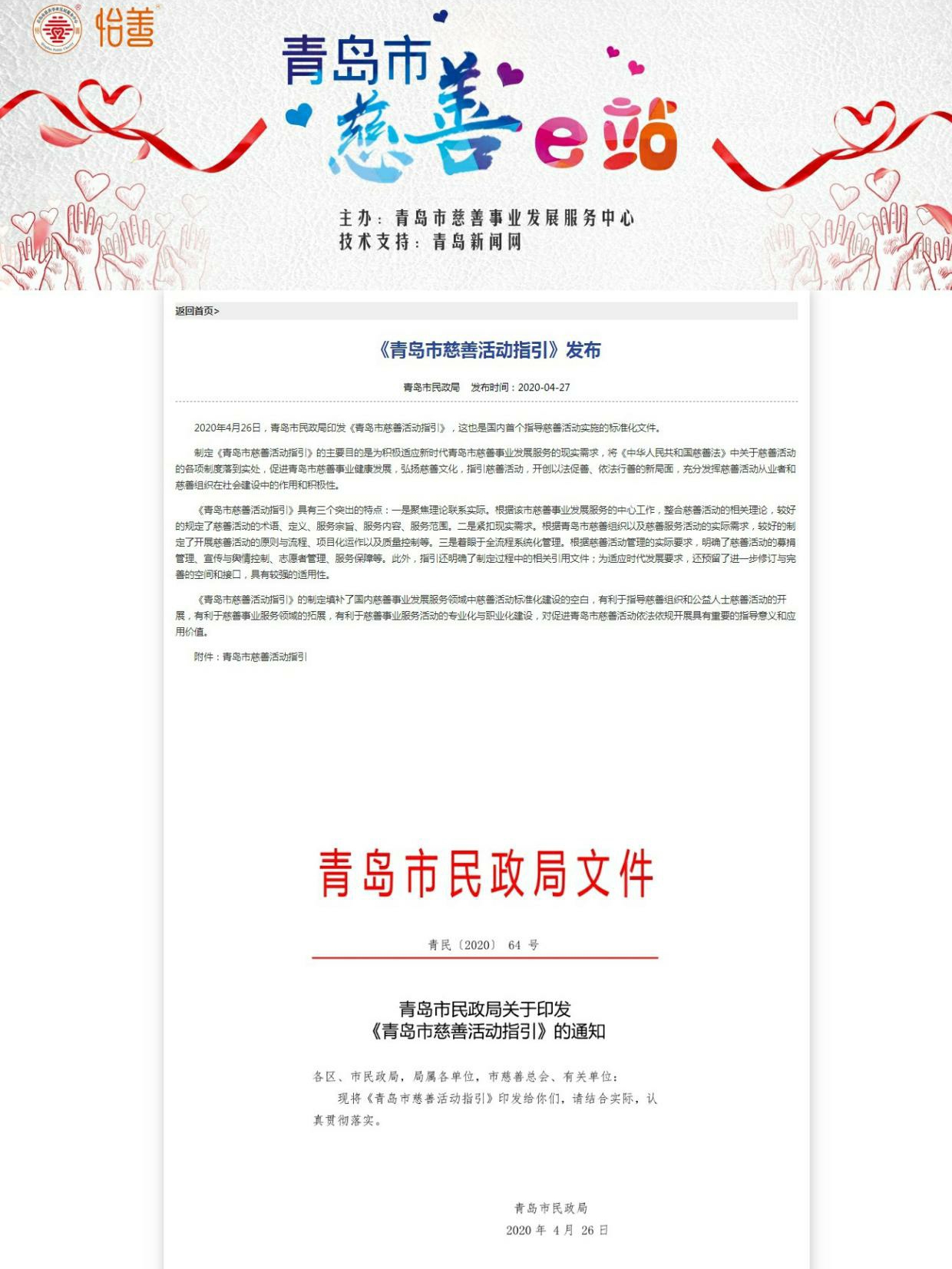 青島新聞網(wǎng):《青島市慈善活動(dòng)指引》發(fā)布