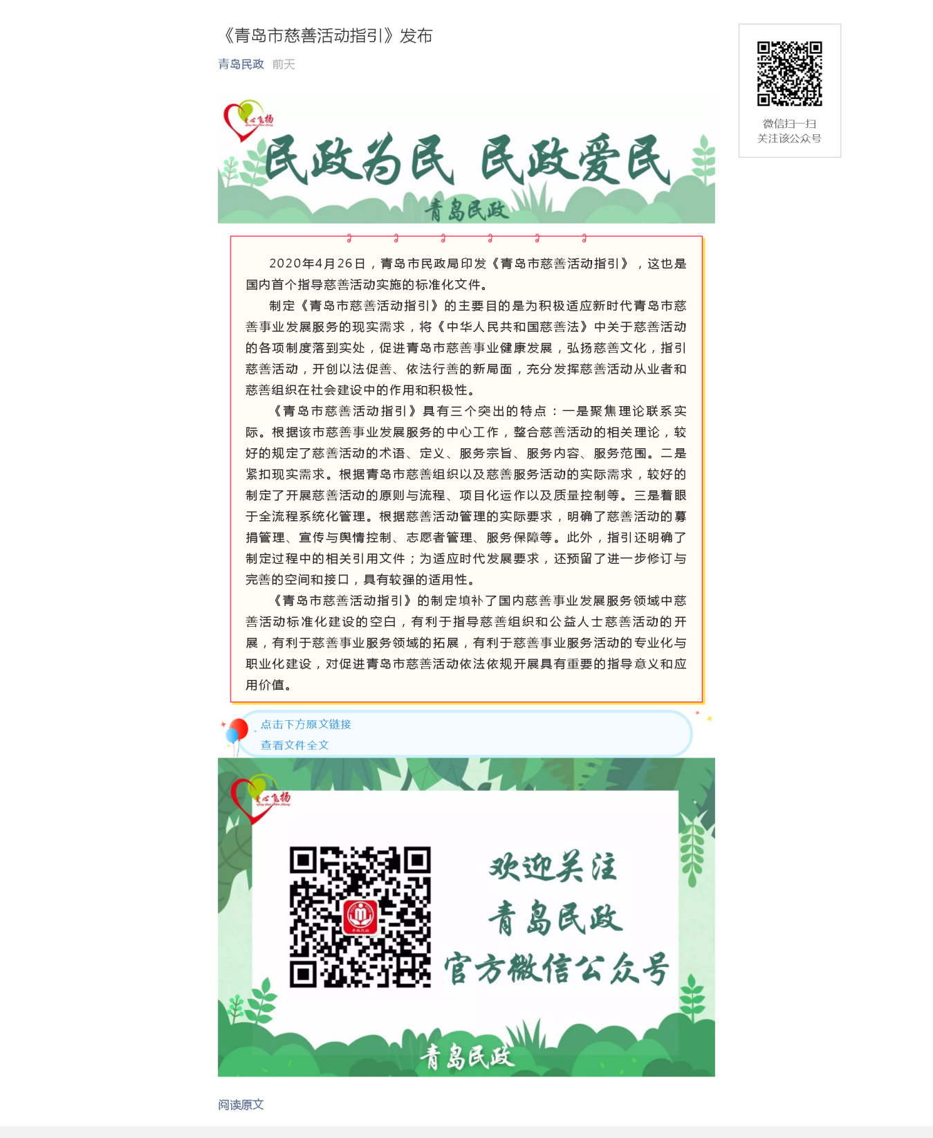 青島民政微信公眾號(hào):《青島市慈善活動(dòng)指引》發(fā)布