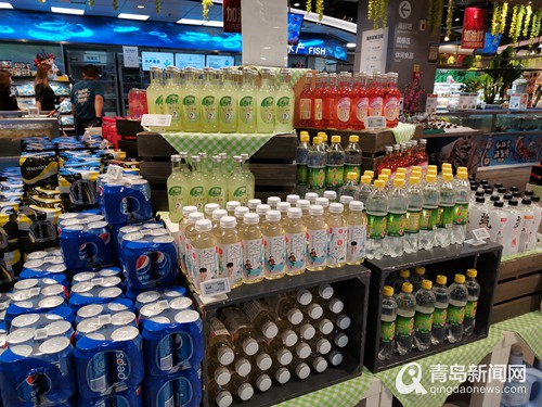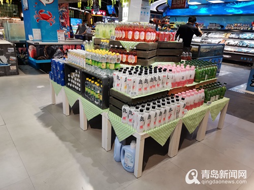 北京盒馬鮮生現場的女士嘉檳果汁飲料陳列。