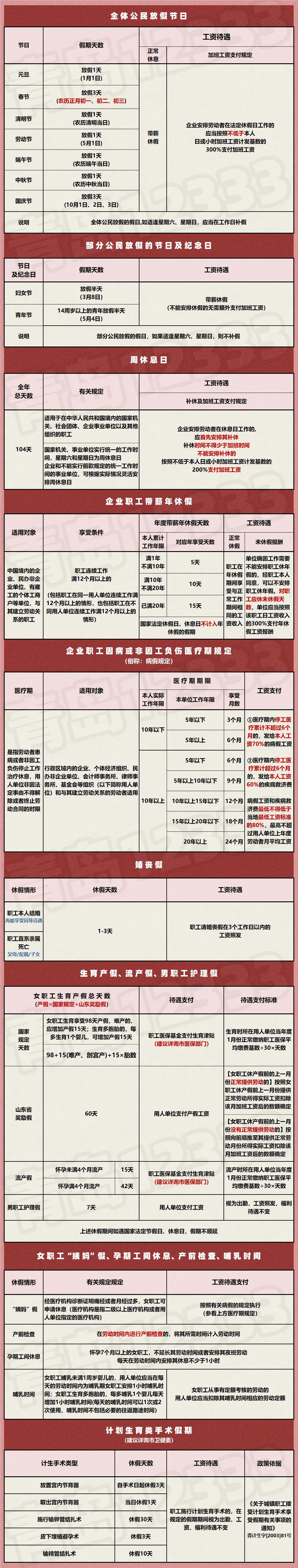 青島新聞網(wǎng)9月17日訊 說起假期規(guī)定,大家最熟悉的就是法定節(jié)假日和周末休息日。然而還有許多假期大家不熟悉甚至聽都沒聽過,那就讓我們一起來盤點(diǎn)梳理下各種休息休假匯總和工資支付規(guī)定。