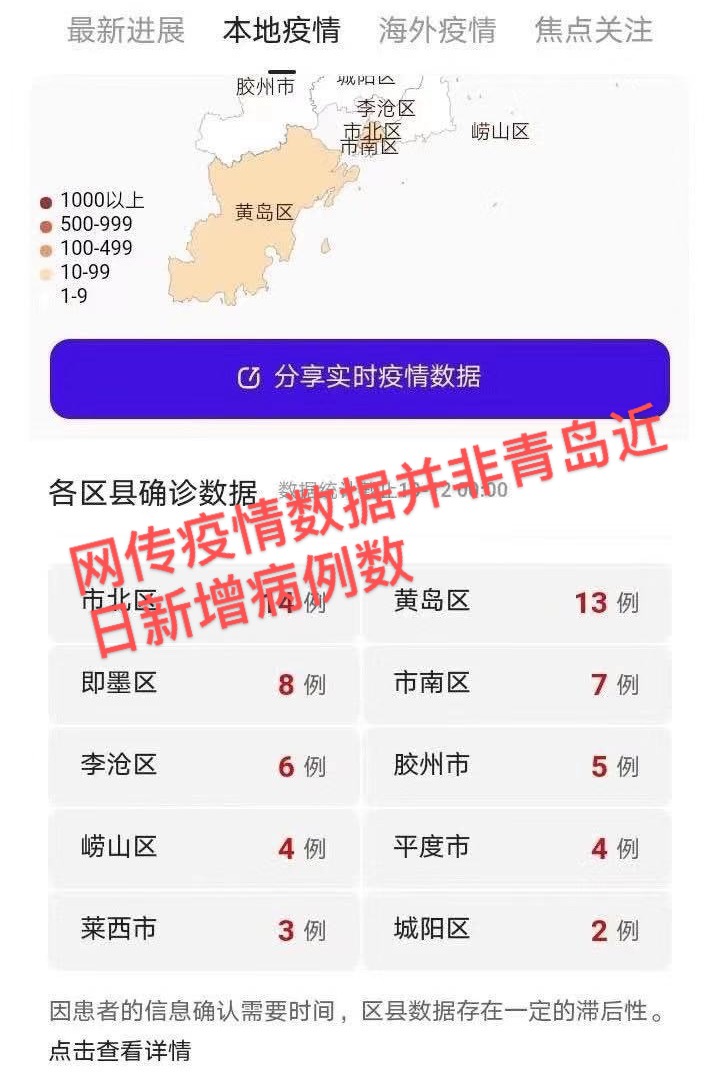 今天,幾張有關青島疫情的數據圖表在朋友圈流傳,有圖表中顯示青島累計確診71例,不少人誤以為是本次疫情的數據。經查證,累計71例是年初疫情爆發以來青島的確診總量,并非本次疫情的確診數量。
