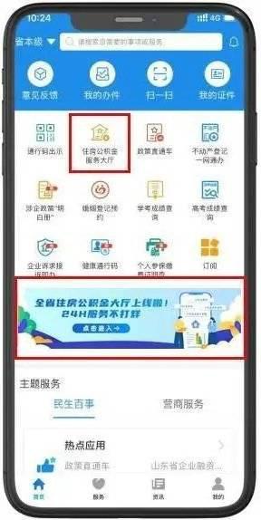 第一步:打開“愛山東”,首頁點擊進入“住房公積金服務大廳”,系統會根據您當前所處位置自動定位。