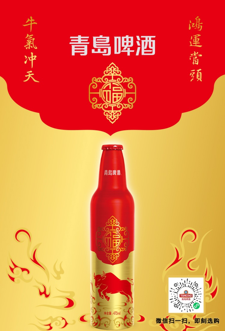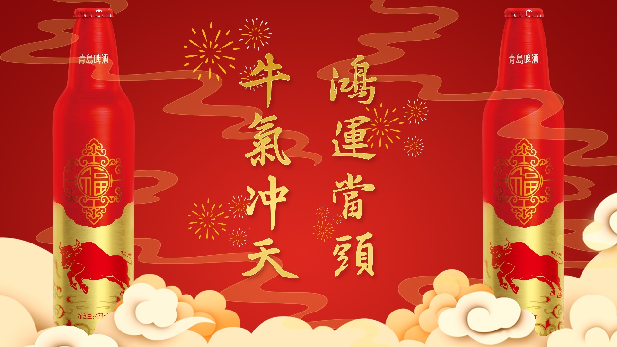 青島啤酒最新推出的牛年版鴻運當頭產品,不僅將中國傳統喜慶元素與極具現代風格的鋁瓶相結合,并把“中國牛”的象“犇”上瓶身,“材”貌雙全自帶節日喜慶氣氛,自然當仁不讓帶上C位光環。