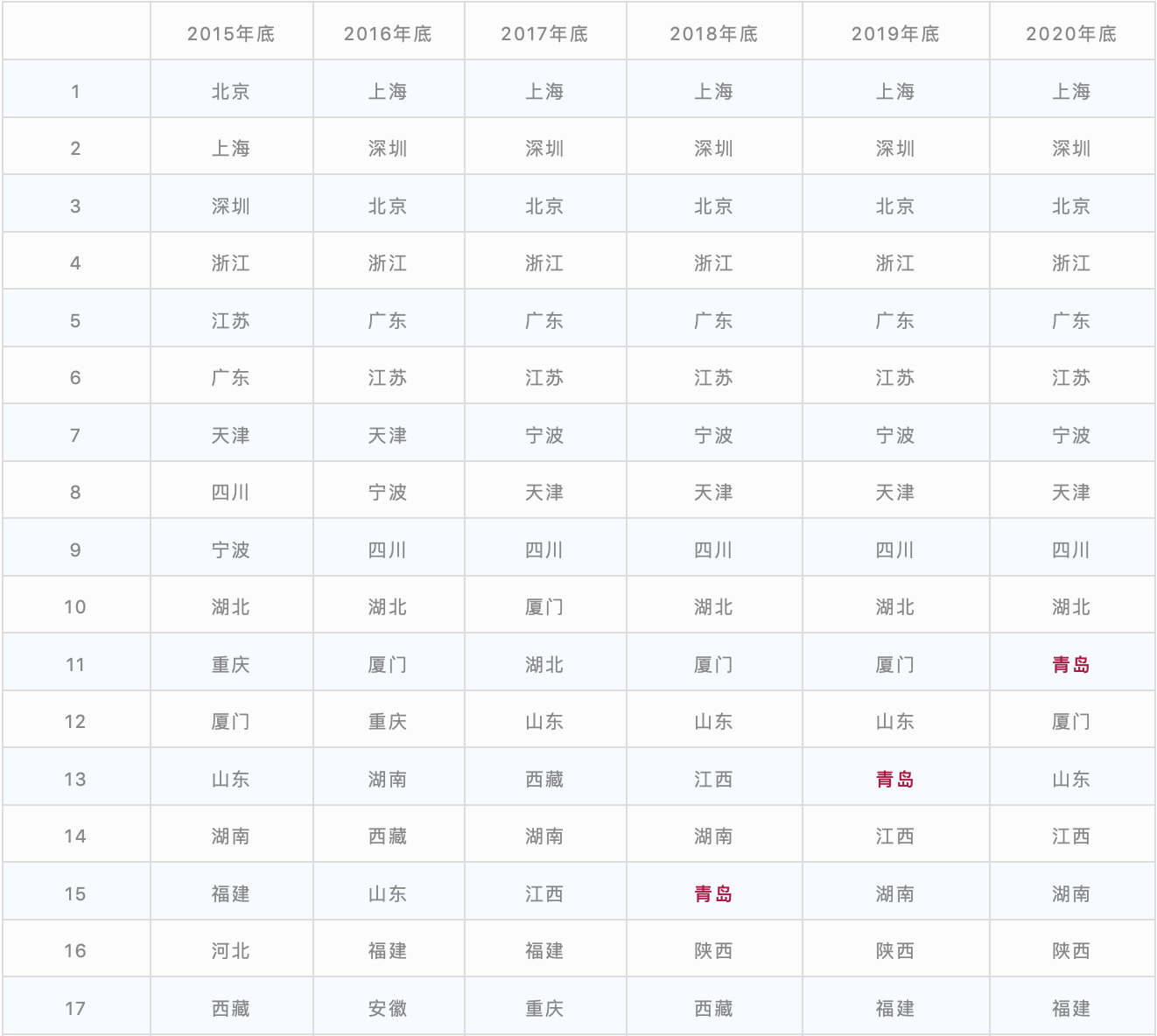 在全國36個轄區中,青島私募基金管理人家數排名逐年提升,從第23位升至第11位。