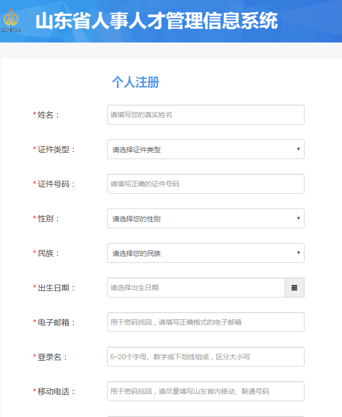 填寫信息,完成個人注冊