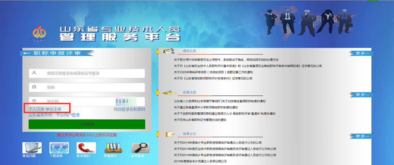 登錄“山東省專業技術人員管理服務平臺”
