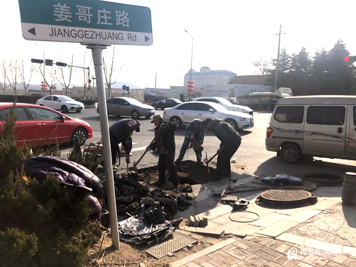 對于此類窨井問題,嶗山區城市管理局高度重視,積極協調沙子口街道辦事處及相關單位到現場進行處置,為了保障原有各類管線的安全,施工人員一點點的把原管線上覆蓋板清除掉,由于原管線上覆蓋板為加重型蓋板,鋼筋混凝土強度比較大,給施工造成了不小的困難。在現場調度指揮下,各項工作緊鑼密鼓的進行,清理損壞的窨井、協調預制好的上覆蓋板、吊裝機吊裝,最后進行窨井蓋的安裝加固。為了保證春節期間車輛及道路的安全,施工進度爭分奪秒,高效的完成了修復工作,并對損壞的地方進行瀝青恢復,保障節日期間車輛正常行駛和市容環境的美觀。