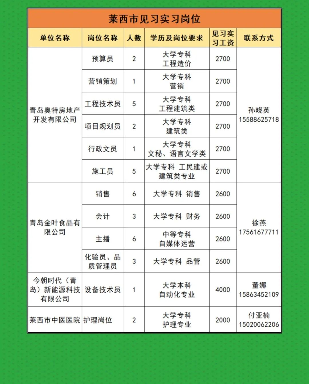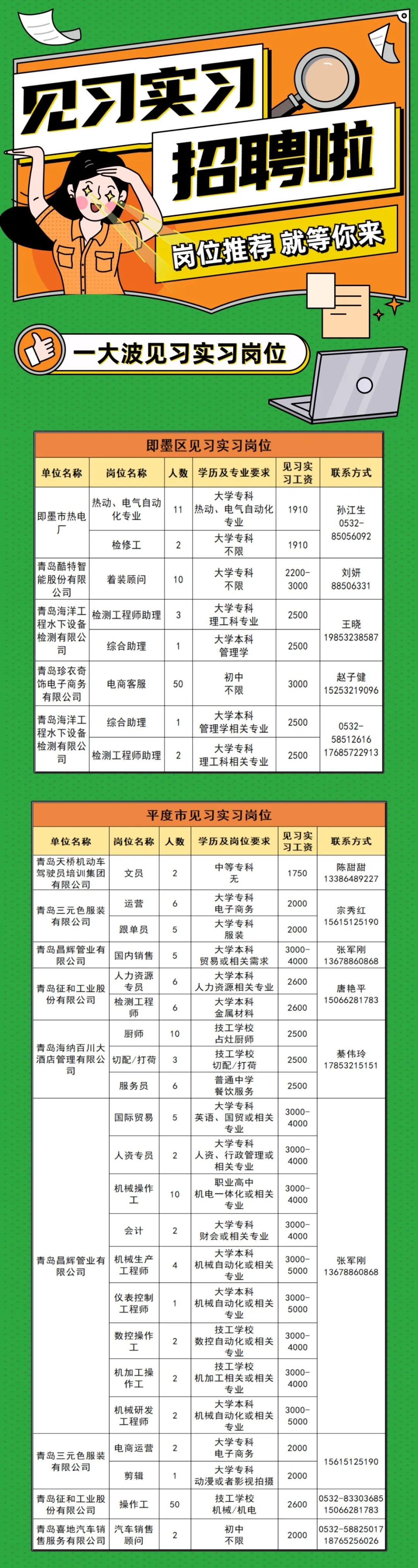 即墨區(qū)、平度市、萊西市見(jiàn)習(xí)實(shí)習(xí)崗位推薦來(lái)啦!