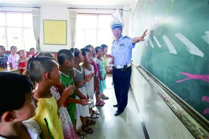 李涌給小朋友普及交規(guī)。觀海新聞/青島早報首席記者 孫啟孟 攝