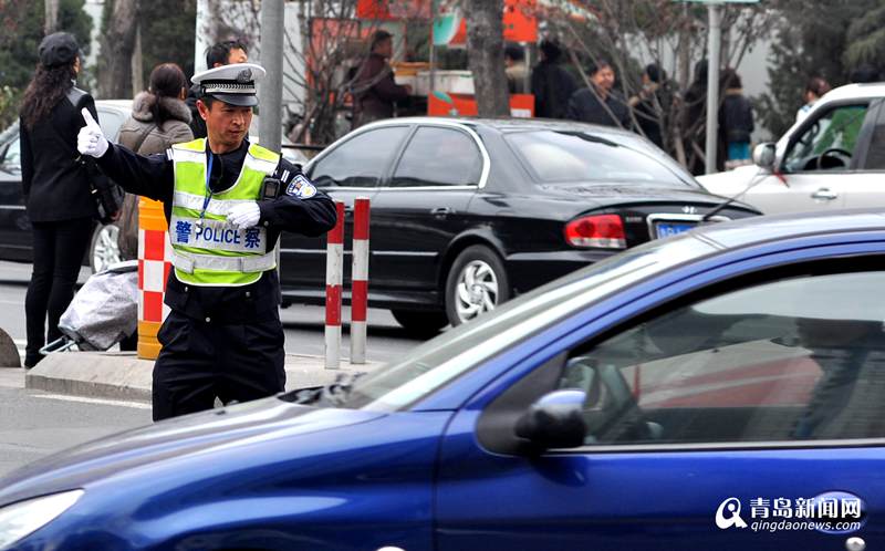 李涌在指揮交通。(2013年4月19日攝于山東路與延吉路路口)