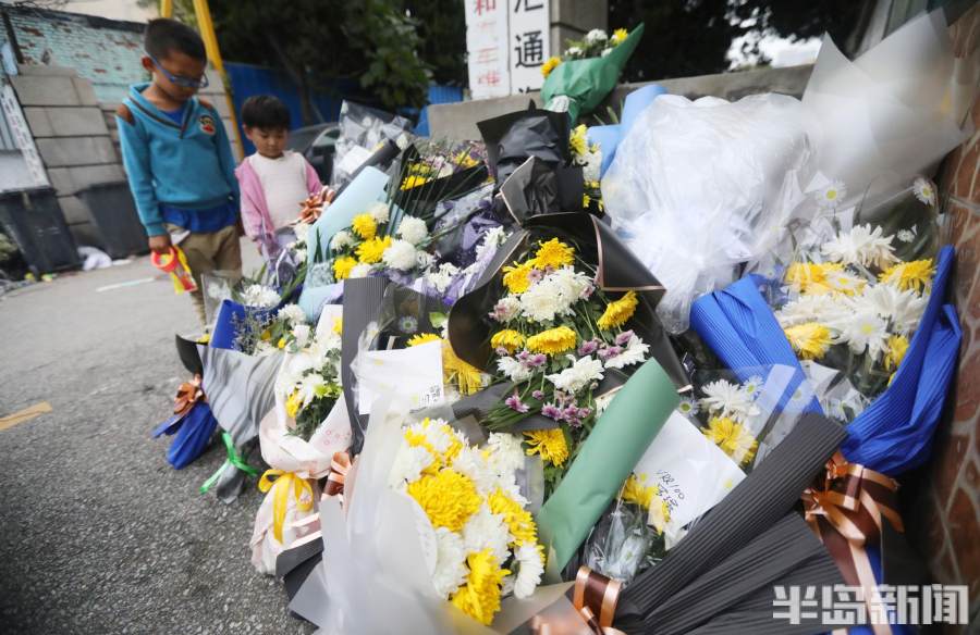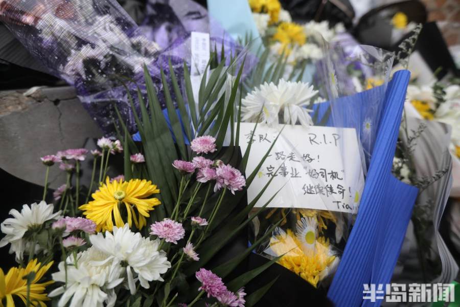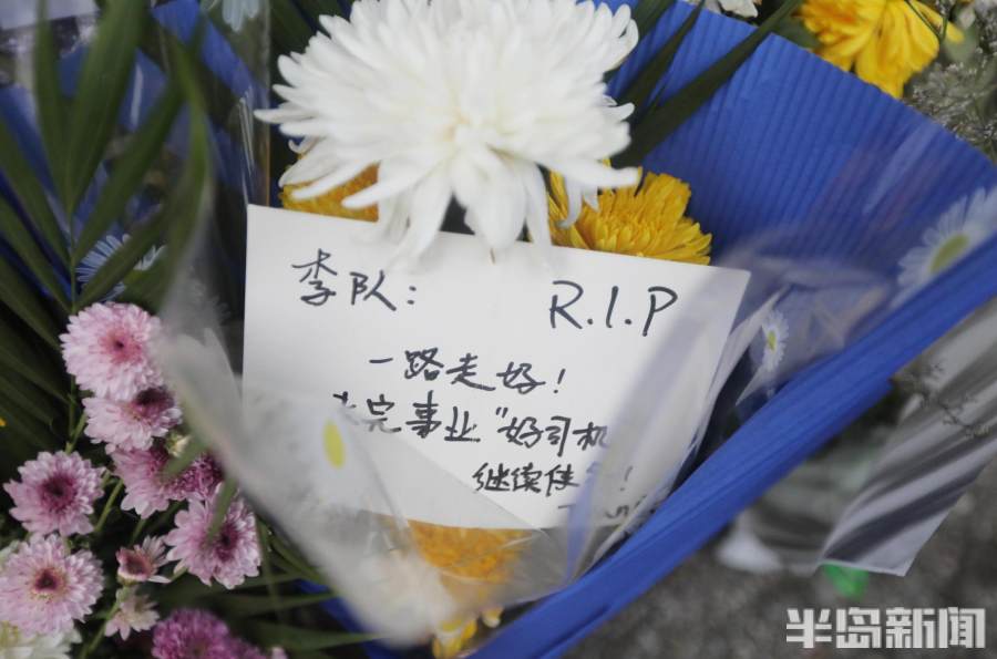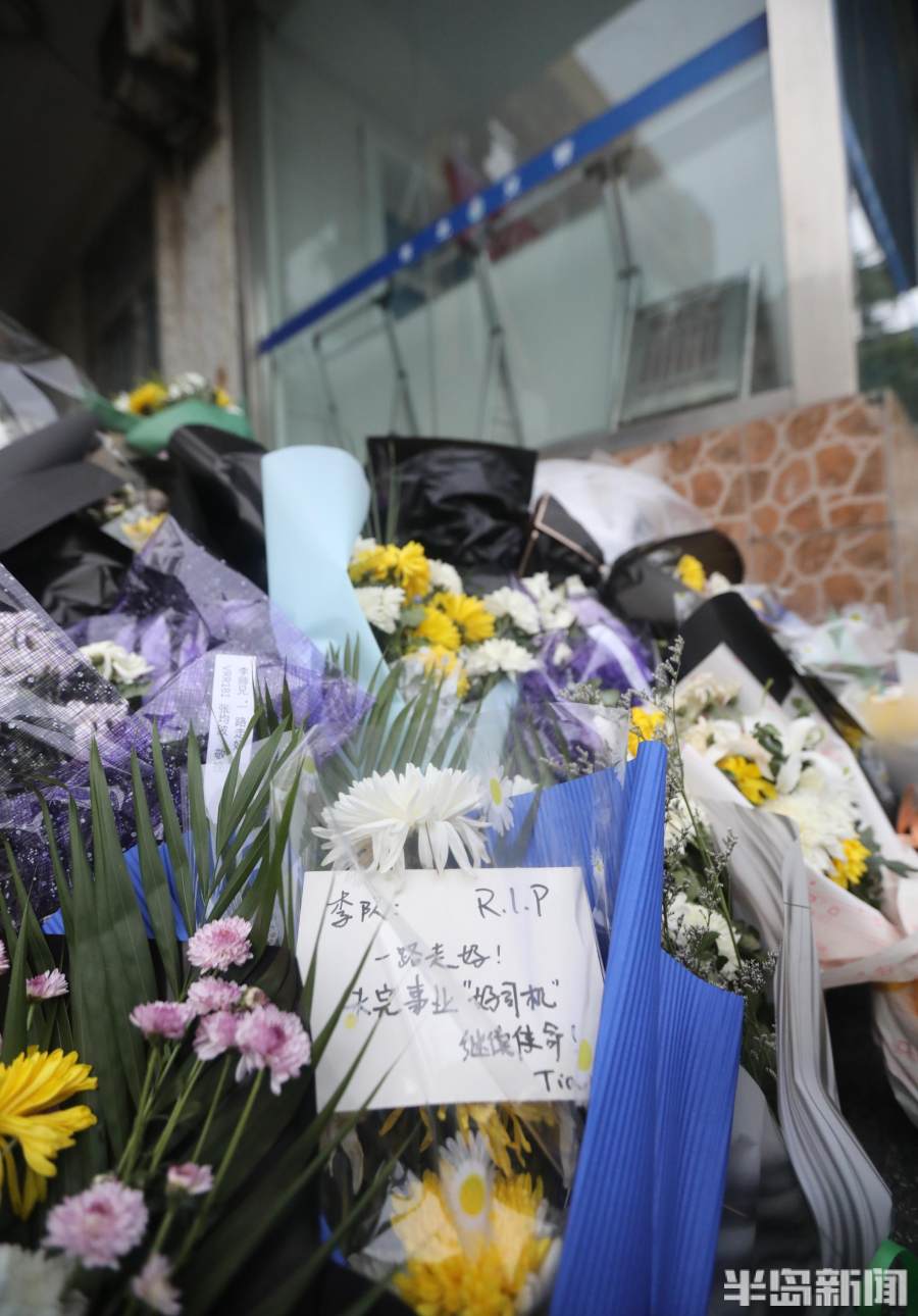 10月7日下午,市北區紹興路遼源路交警中隊門前,擺放了十幾束市民自發送來的鮮花,上面寫著各種話語,祭奠逝去的交警李涌,這個中隊是他曾經工作過的地方,一些市民以這種方式來祭奠這位交警英雄“涌哥”!