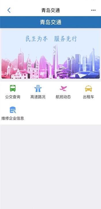 新年假期結(jié)束,不管是返鄉(xiāng)還是日常上下班通勤,便利的交通信息查詢都是不可或缺的服務(wù)。在 “愛山東·青e辦”首頁搜索“青島交通”,進(jìn)入后,可查詢公交、出租車、航班動態(tài)及維修企業(yè)信息等。