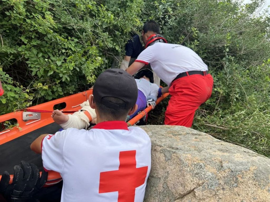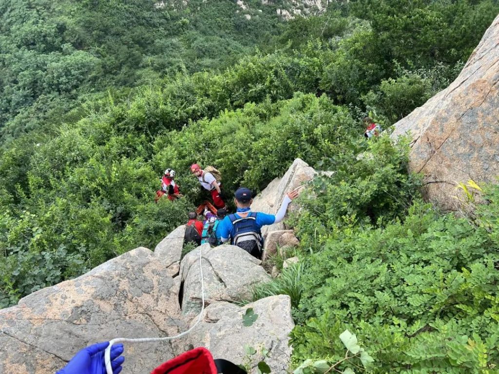 2022年7月3日上午10時(shí)16分,平度紅十字藍(lán)天救援中心接驢友電話(huà)求救,老龍灣風(fēng)景區(qū)裕風(fēng)頂附近有人受傷急需救援,救援隊(duì)快速啟動(dòng)應(yīng)急響應(yīng)機(jī)制,攜帶醫(yī)療裝備、繩索、擔(dān)架等山地救援裝備向事發(fā)區(qū)域集結(jié)。當(dāng)天上午11時(shí)7分,救援隊(duì)員到達(dá)老龍灣,指揮部現(xiàn)場(chǎng)研判首先出動(dòng)無(wú)人機(jī)迅速鎖定傷者位置并引導(dǎo)隊(duì)員登山,并根據(jù)現(xiàn)場(chǎng)情況下達(dá)第二梯隊(duì)結(jié)集指令。